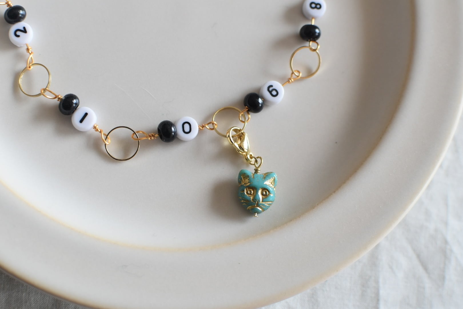 目の間に通しておいて、段を重ねるごとに、次の数字のリングを針に移すことで、楽に段数を数えることができます。