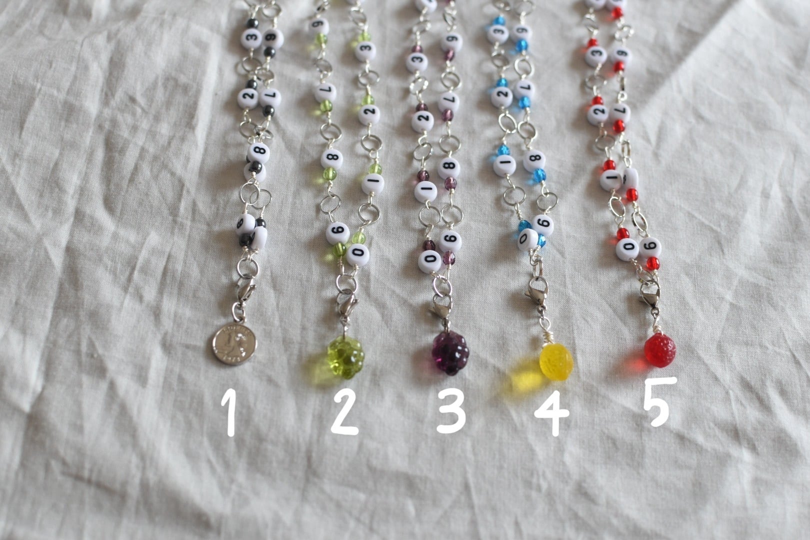 目の間に通しておいて、段を重ねるごとに、次の数字のリングを針に移動させることで、楽に段数を数えることができます。