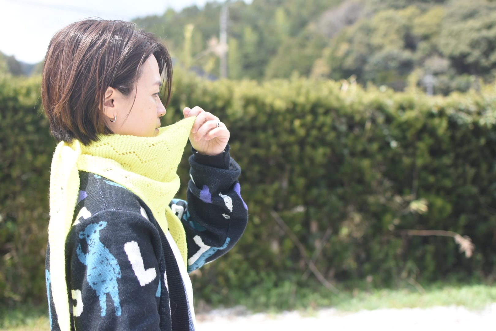 気温が安定しない春先に首元にさらりと巻いたり肩にかけて温度調整ができます