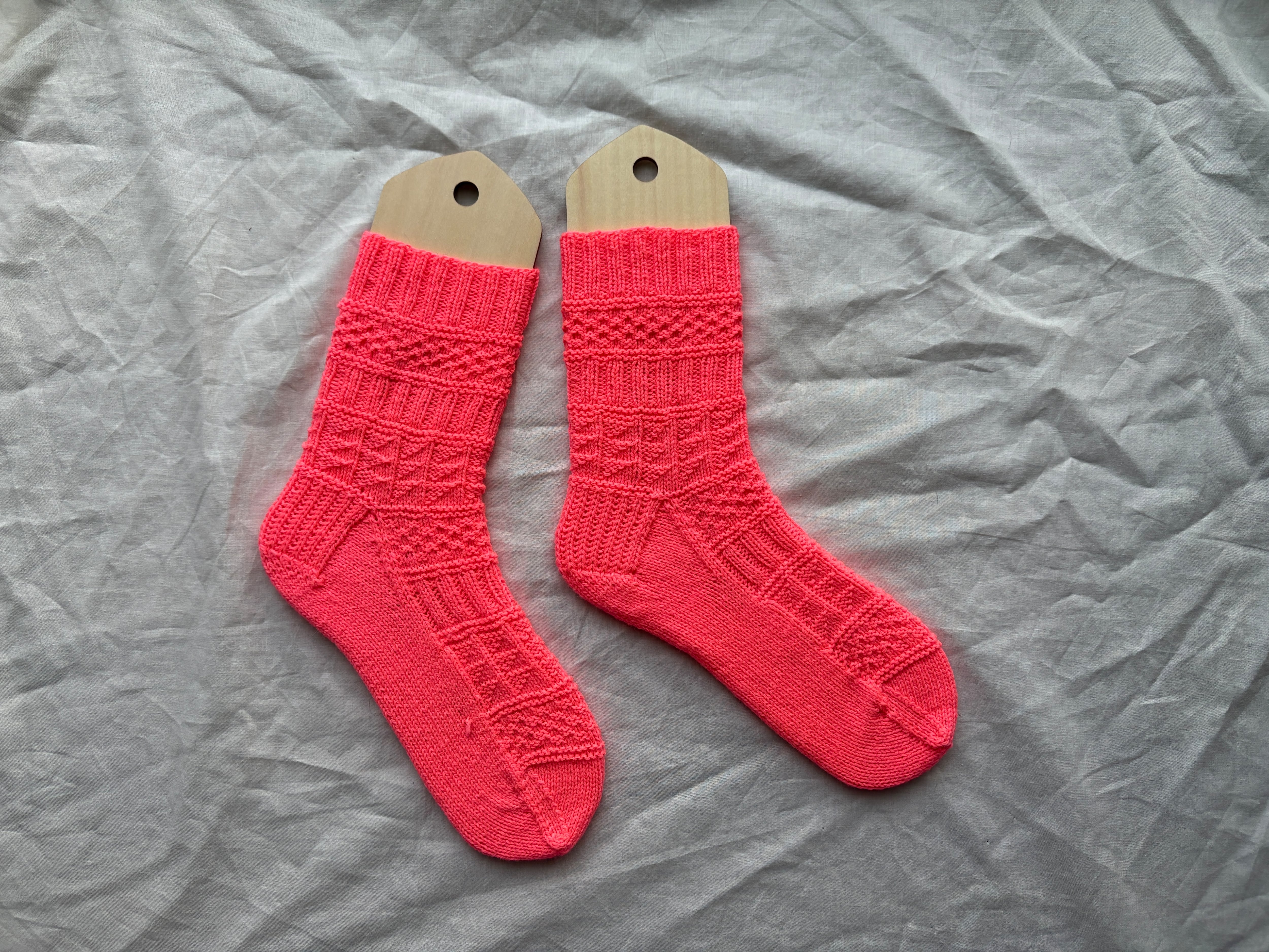 SMALL FLAGS (SOCKS)は、表目と裏目で構成されたガンジー模様をベースにした、