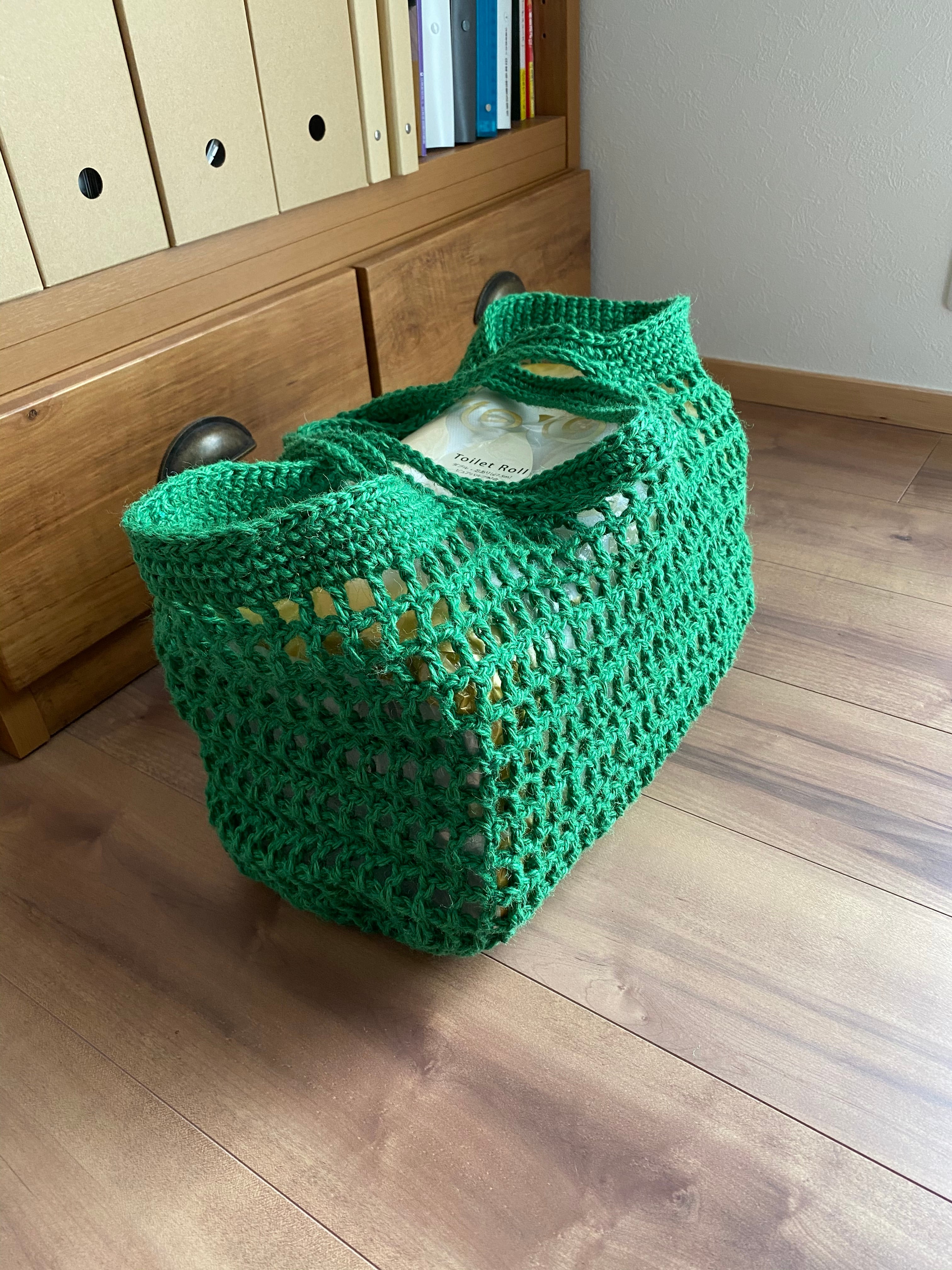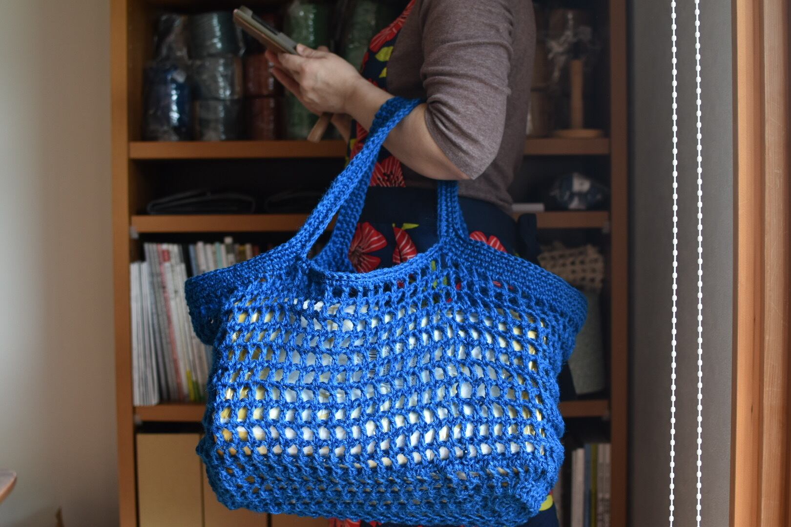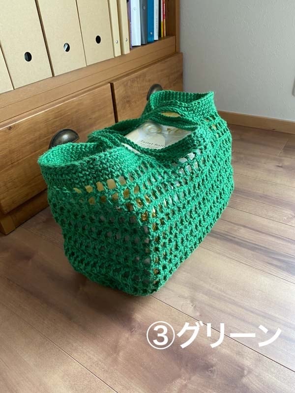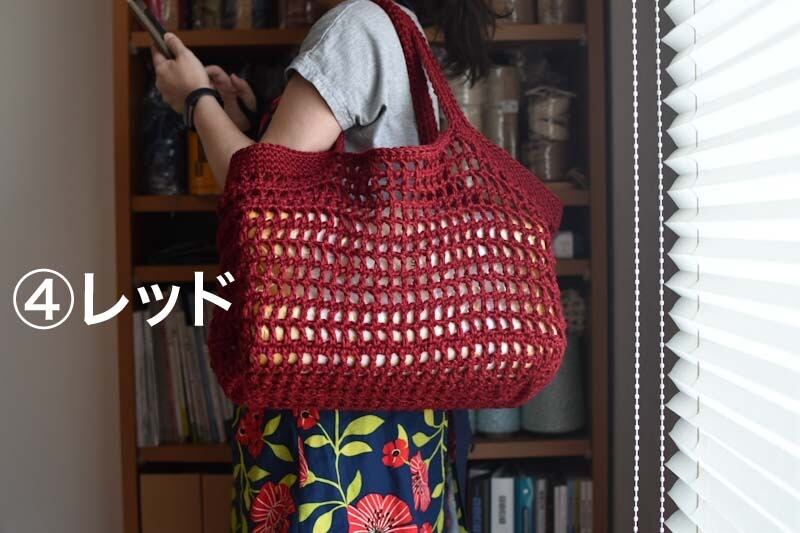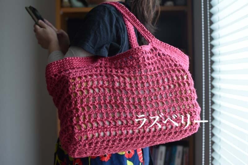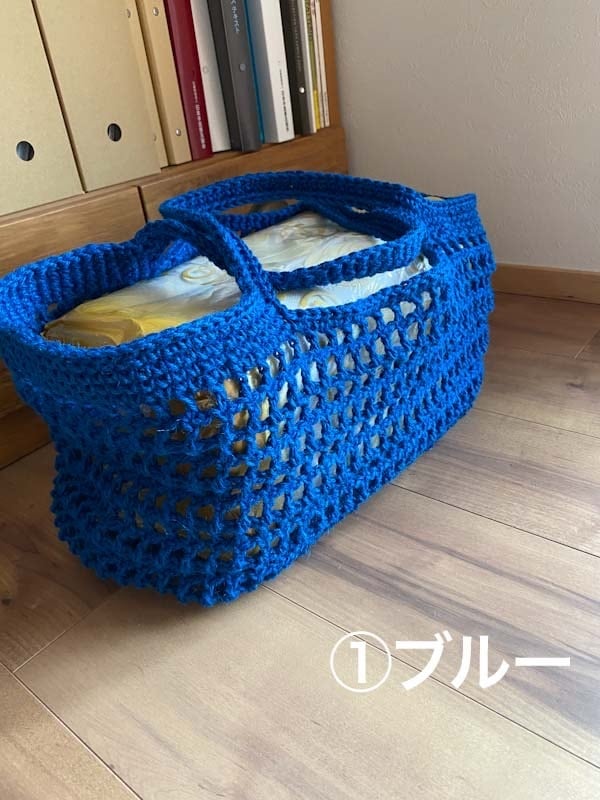 サイズ:横約59〜63センチ・高さ約24センチ・底まち約20センチ(色によって糸の太さや硬さが違うためサイズに多少差があります)