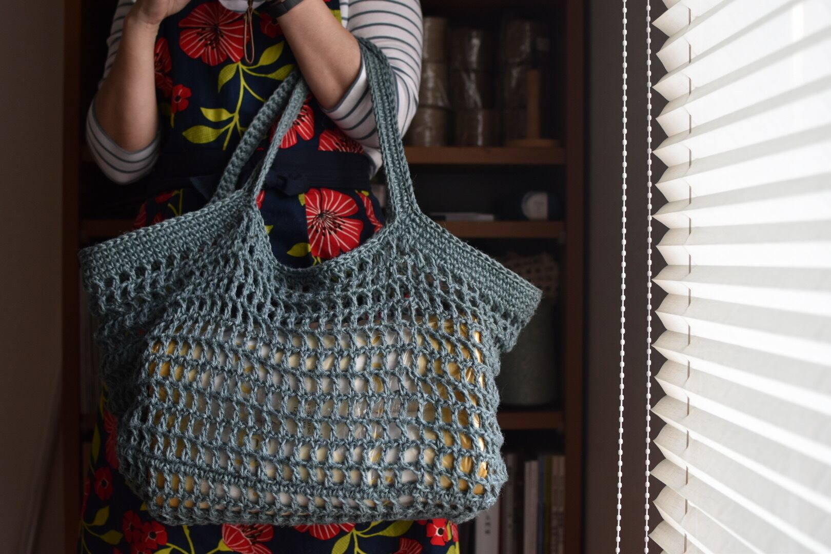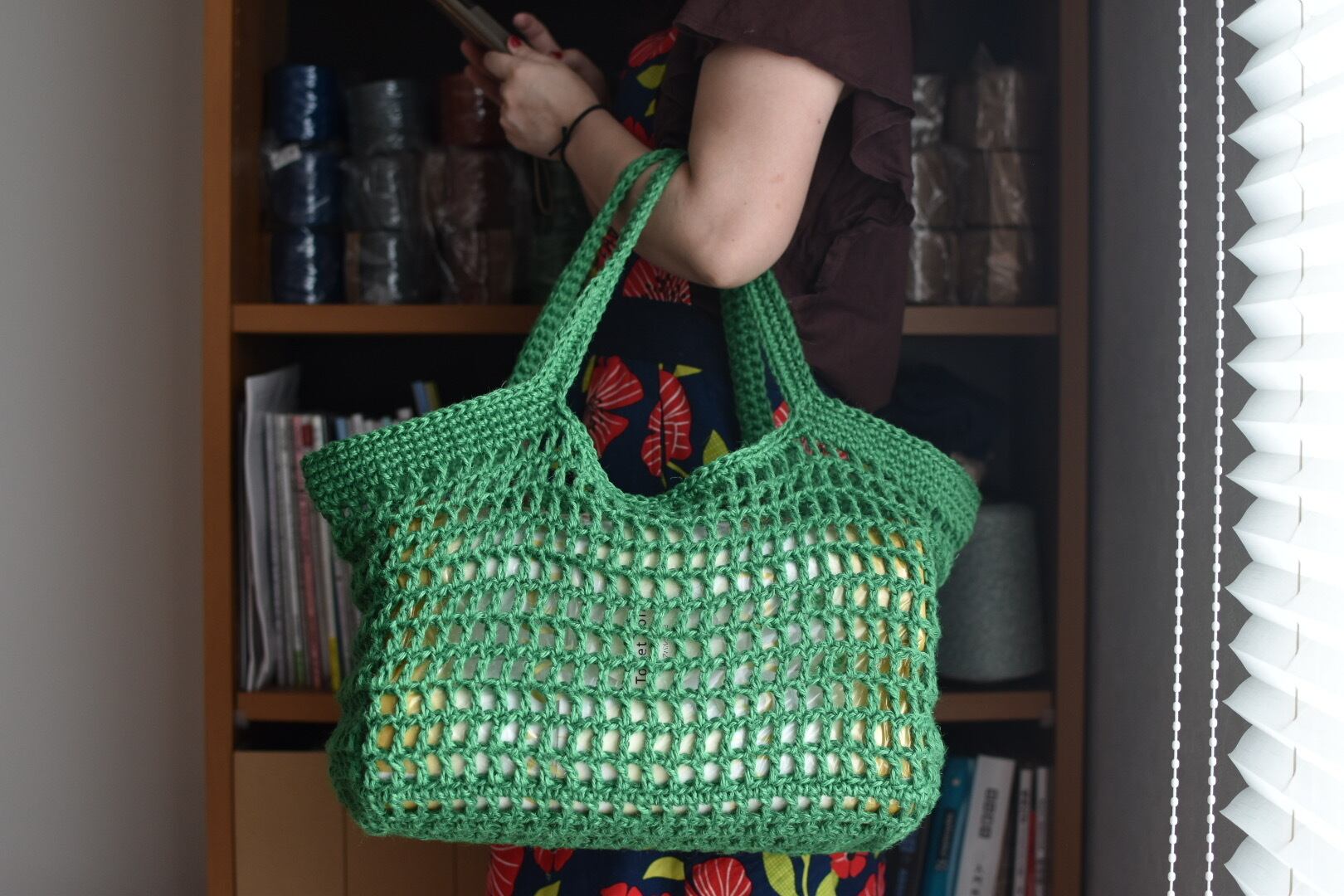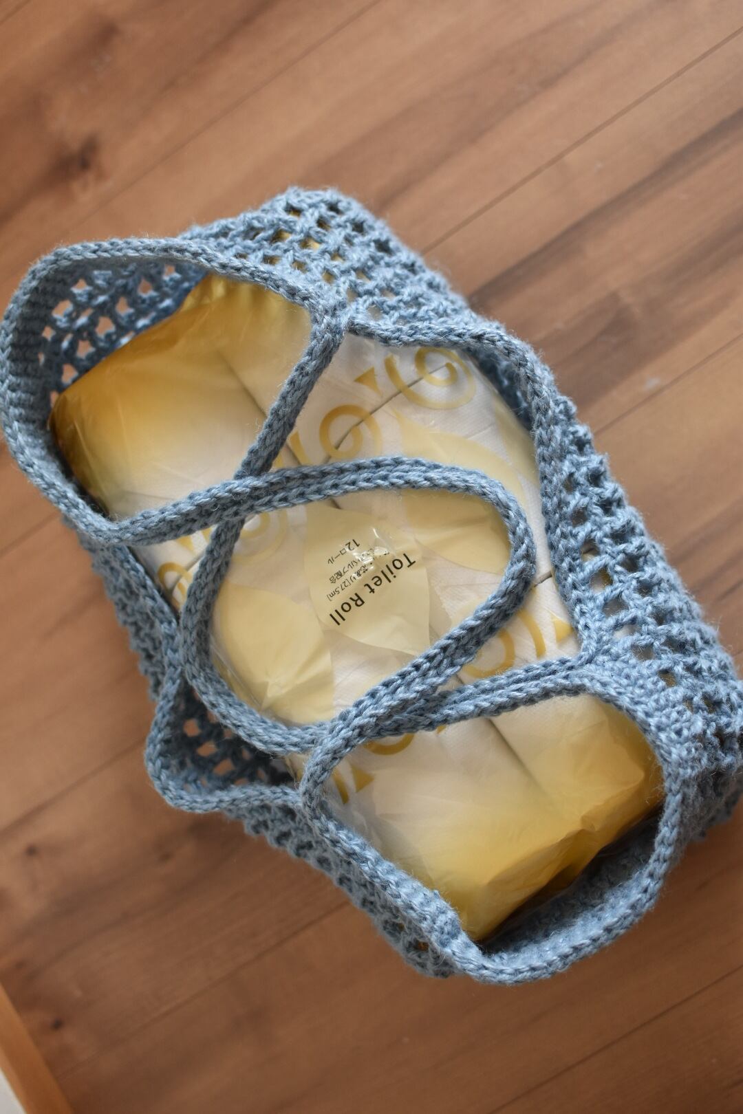 サイズ:横約59〜63センチ・高さ約24センチ・底まち約20センチ(色によって糸の太さや硬さが違うためサイズに多少差があります)